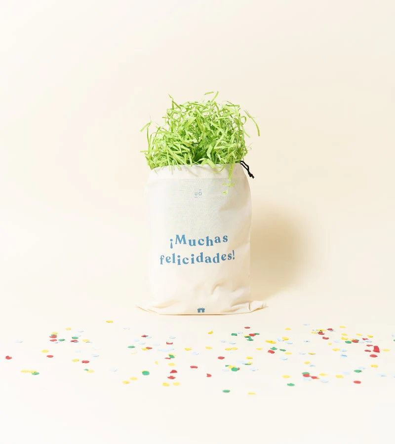 Bolsa tela regalo "Muchas felicidades"