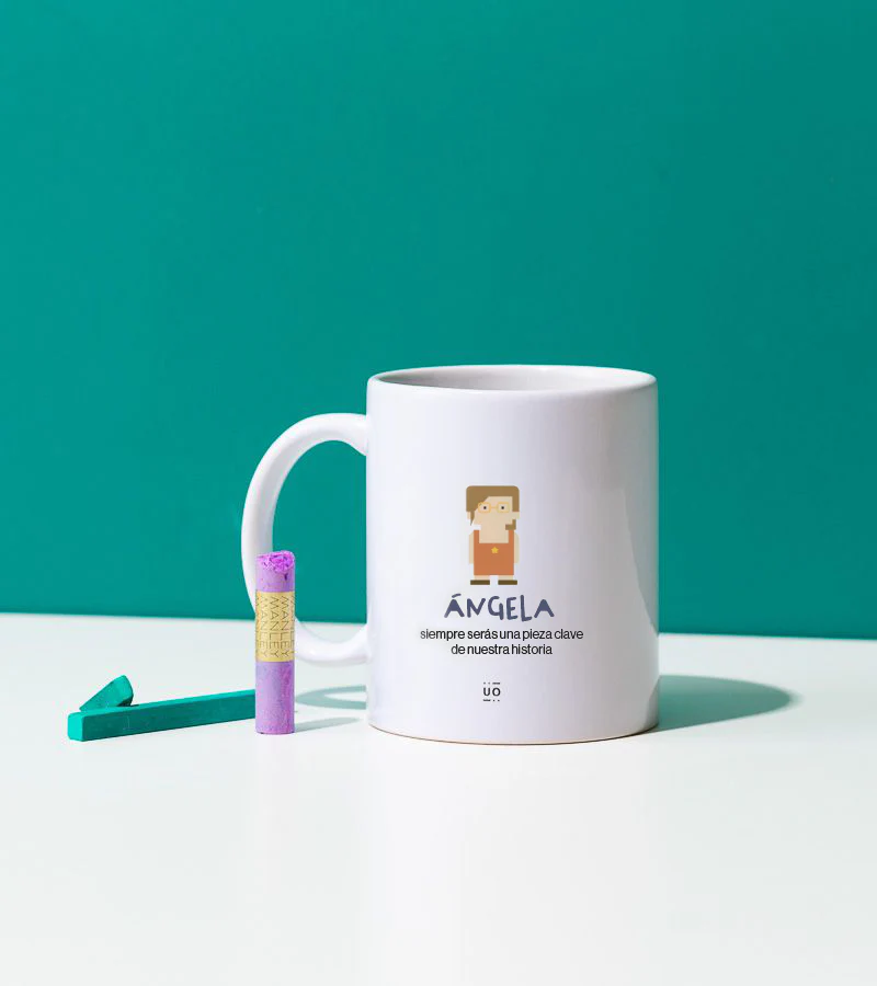 Taza personalizada con el nombre y personaje del / la profe, y los nombres de los peques.
